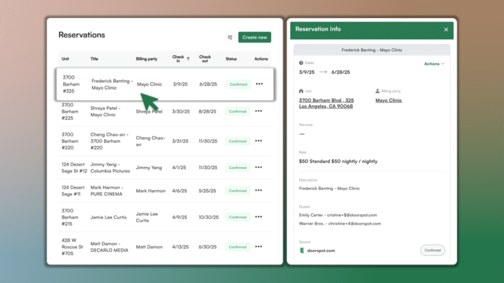 You can now modify a reservation right from the reservation list view. This feature helps you stay organized and track changes from more places. From the Reservations page, click on a Reservation > Actions > Edit.