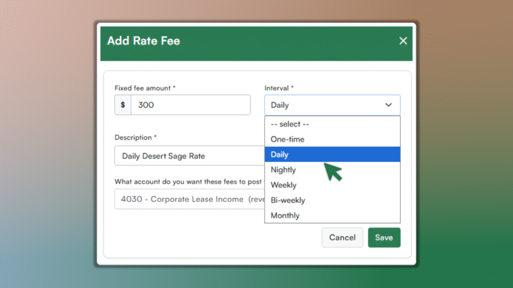 Easily set custom or negotiated reservation rates and add extra services like parking, cleaning, or pet fees. Rates and services can be set as a fixed amount or a percentage, and charged daily, nightly, weekly, monthly, or as a one-time fee.
