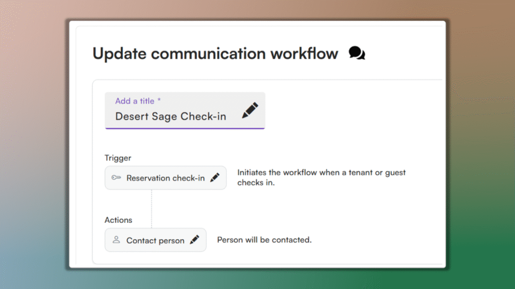 Never miss a beat with DoorSpot Workflow automations. Workflows trigger messages to be delivered to anyone based on different actions, including reservation creation, check-in, check-out, payment receipt, and more.