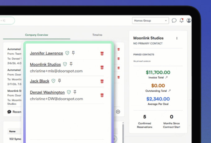 Manage the full sales pipeline with total accuracy to reduce vacancy loss across your portfolio. Experience clear visibility into the client and guest lifecycle as leads convert into confirmed reservations on DoorSpot’s infinite calendar.